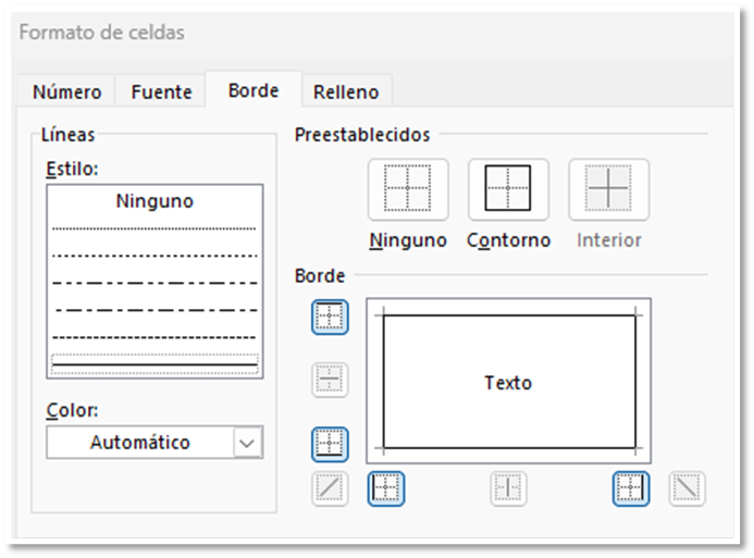 Hacemos clic en formato, seleccionamos la pestaña borde, y, marcamos contorno.