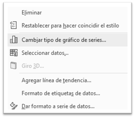 Para ello, hacemos clic con el botón alternativo del ratón sobre una de estas columnas, y, seleccionamos dar formato a serie de datos.