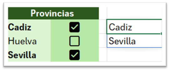 En la hoja resultado, vamos a poner las provincias que tenemos junto con una casilla de verificación, después, ponemos los años disponibles, junto con una casilla de verificación.