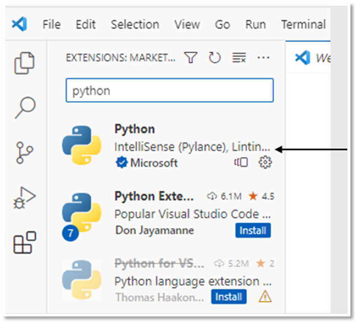 Con esta extensión, ya podemos usar Python en el editor.