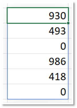 La primera cantidad sale de sumar la variable “a” que entra valiendo cero, más la primera cantidad de la variable “b”, es decir, 0+930 = 930.