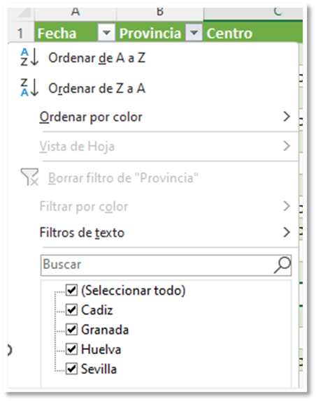Si desplegamos la columna de provincia, vemos que aparecen las cuatro provincias.